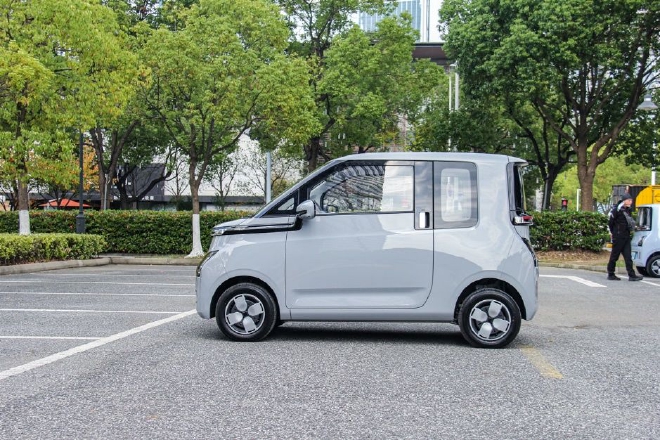 五菱晴空则无论风格还是尺寸,都和五菱宏光MINI EV相差不大,整车采用“方盒子”设计风格,毫无新意。前脸设计也比较简洁,一体式灯组给人一种敦实感;另外官方宣传的LED贯穿灯,也只有最高配才拥有。轮毂则为12寸钢圈轮毂设计,视觉效果一般,而且只有4种外观颜色和2种内饰,选择性也太少。